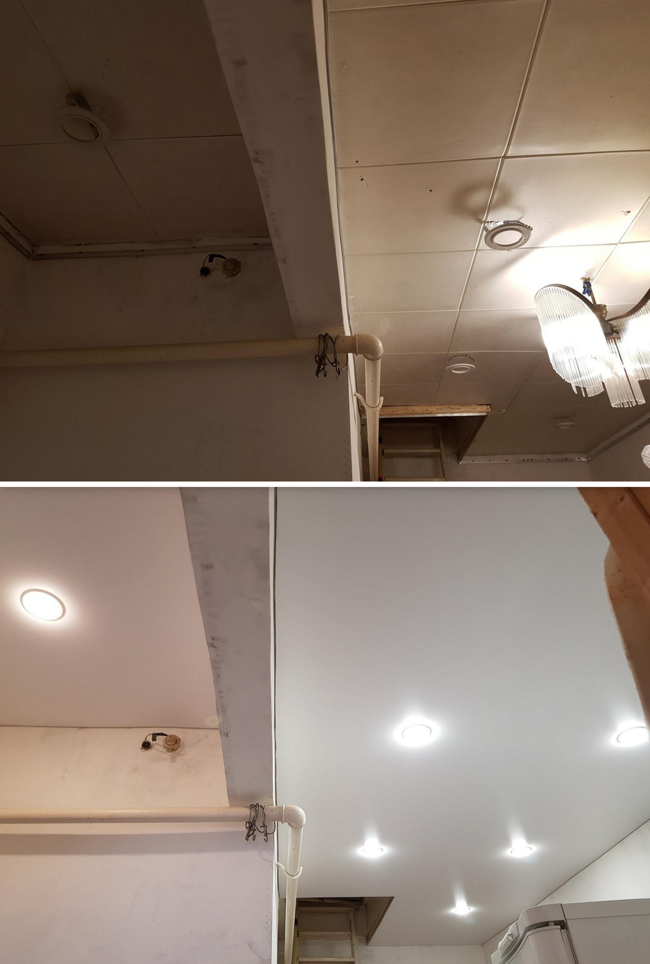 Потолок нужен был срочно, на следующий день. У всех накладно, и только тут, компания с собственным производством, смогла натянуть потолок на следующий день.