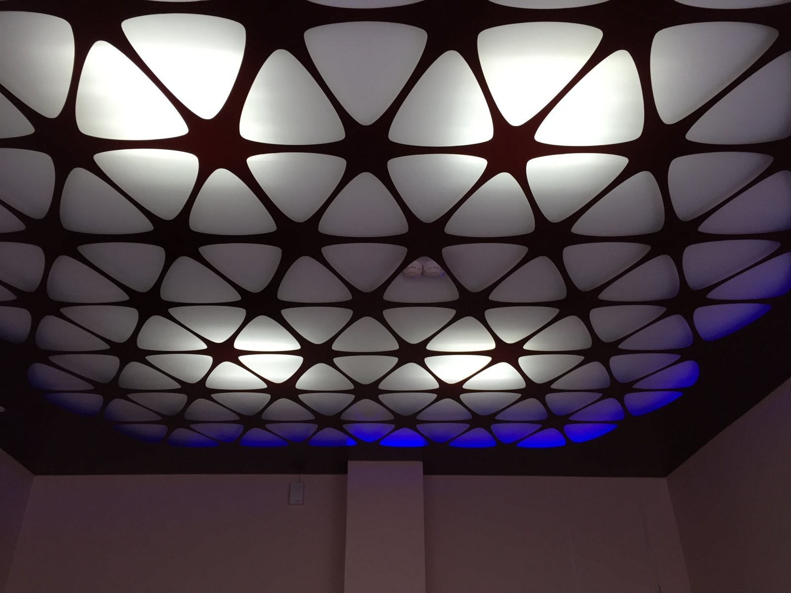 - возможность установить полупрозрачный потолок (используется равномерная подсветка по всему полотну)